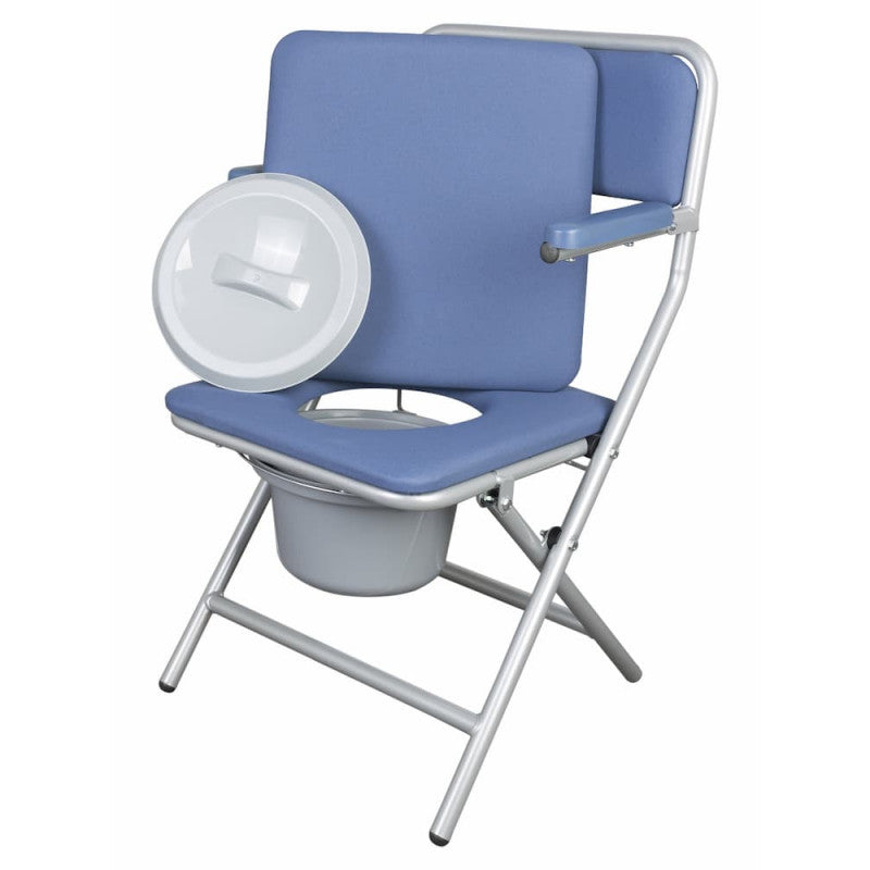 Cadeira sanitária articulada sem rodas. Azul/ medidas largura 56 cm, altura: 82-102